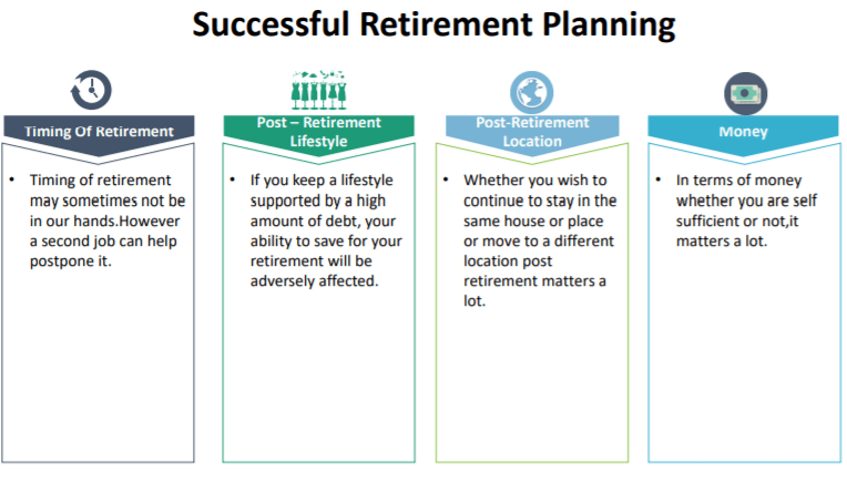 Retirement:-It is the age when you no longer able to do monetary activity. When we think of retirement the first question that comes in our mind is how much money we need and how much of this is already available.