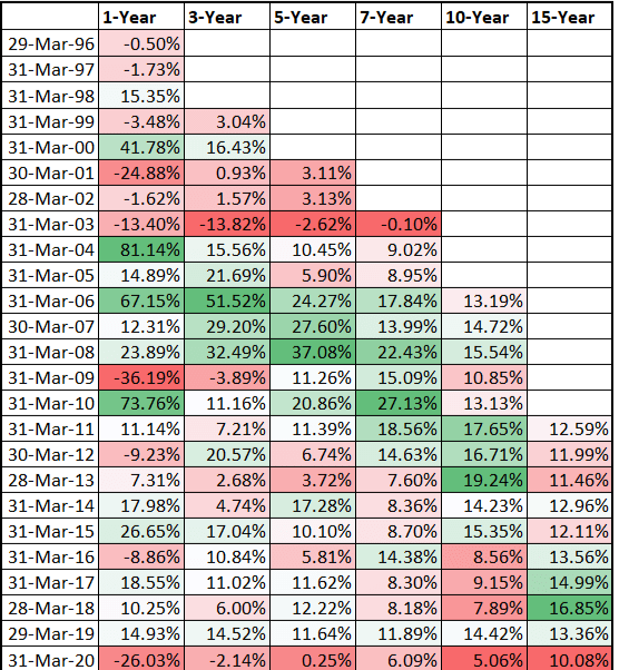 NIFTY 50 Rolling Return From Year 1996